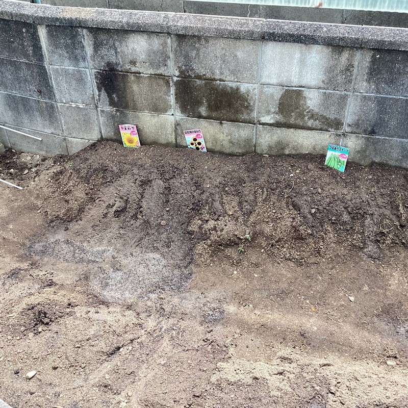 植える場所を決めてみんなで力を合わせて種や苗を植えました。