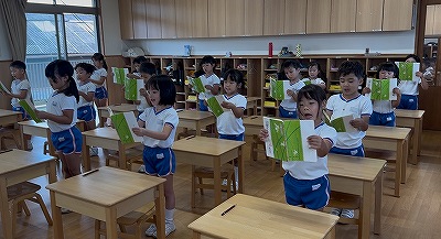 年長児の黄組が「音読コンクール」に向けて練習を頑張っています