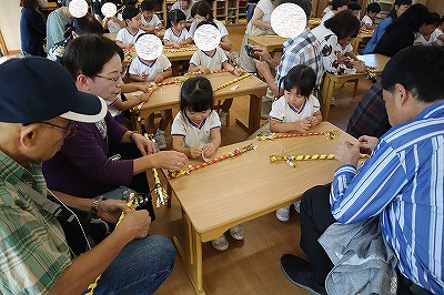 授業の後は、祖父母の皆様と一緒に制作活動をしました。