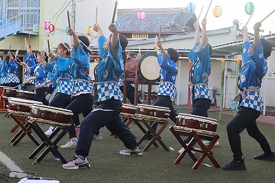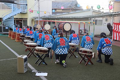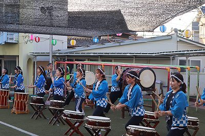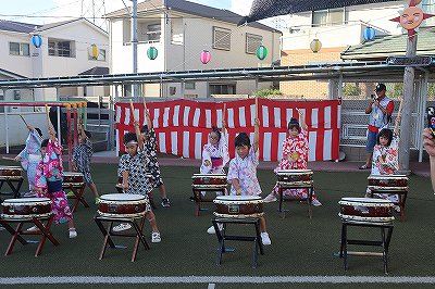 年長児の黄組が和太鼓を打って、お祭りを更に盛り上げました。