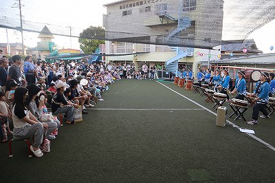 東百舌鳥幼稚園の広い運動場に、お父さんお母さん、おじいちゃんおばあちゃん、