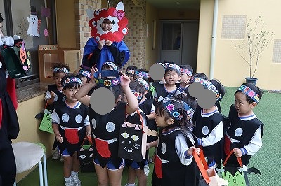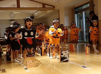 今日はハロウィン!皆で仮装をしてパーティーをしました。