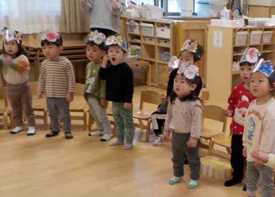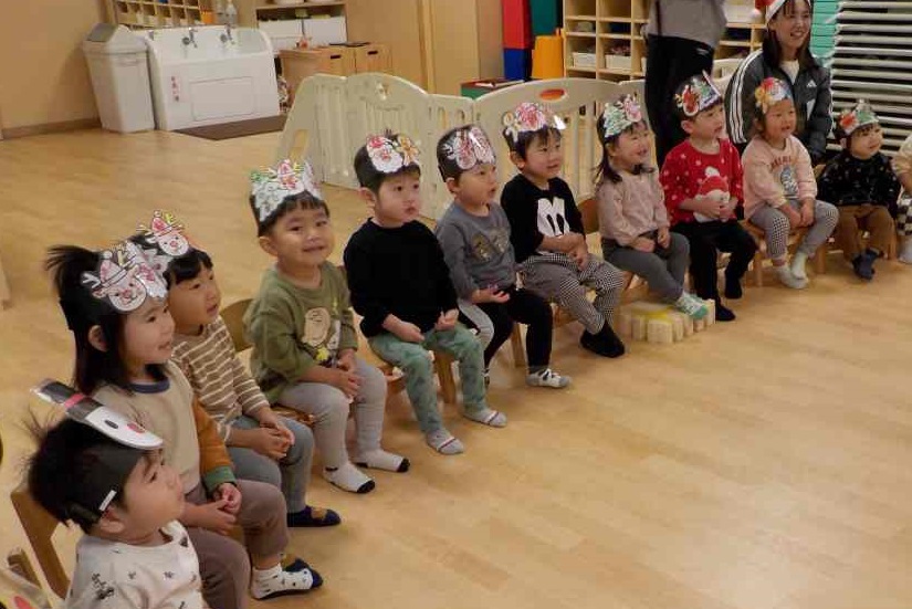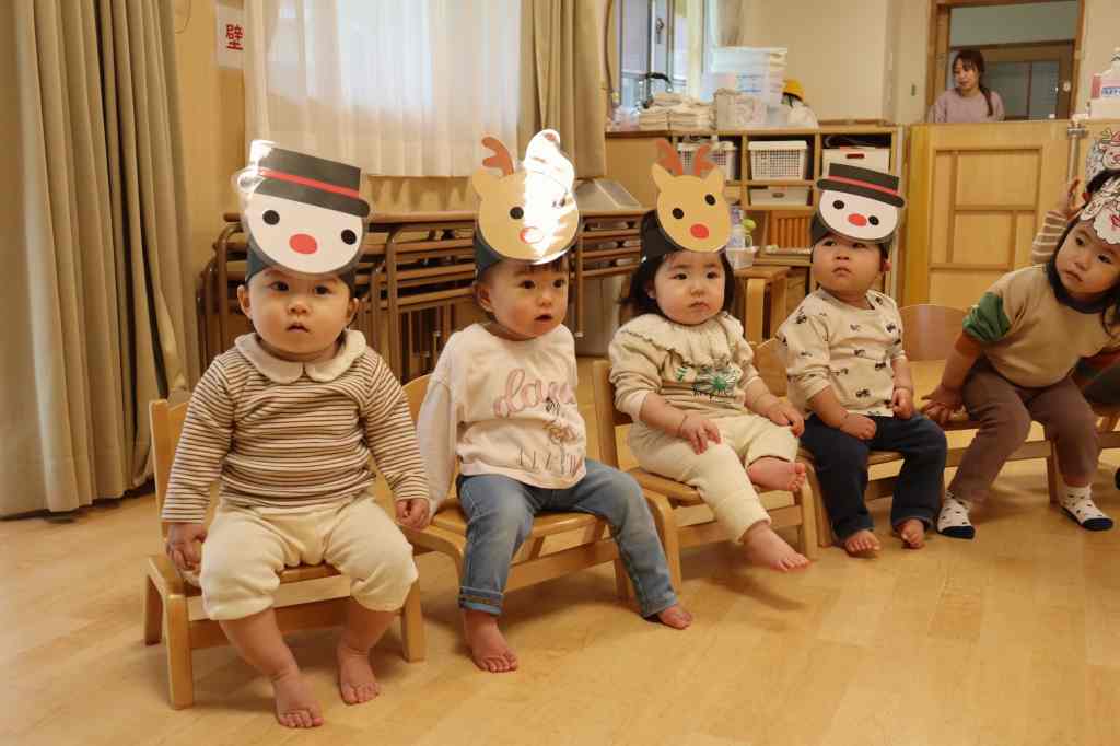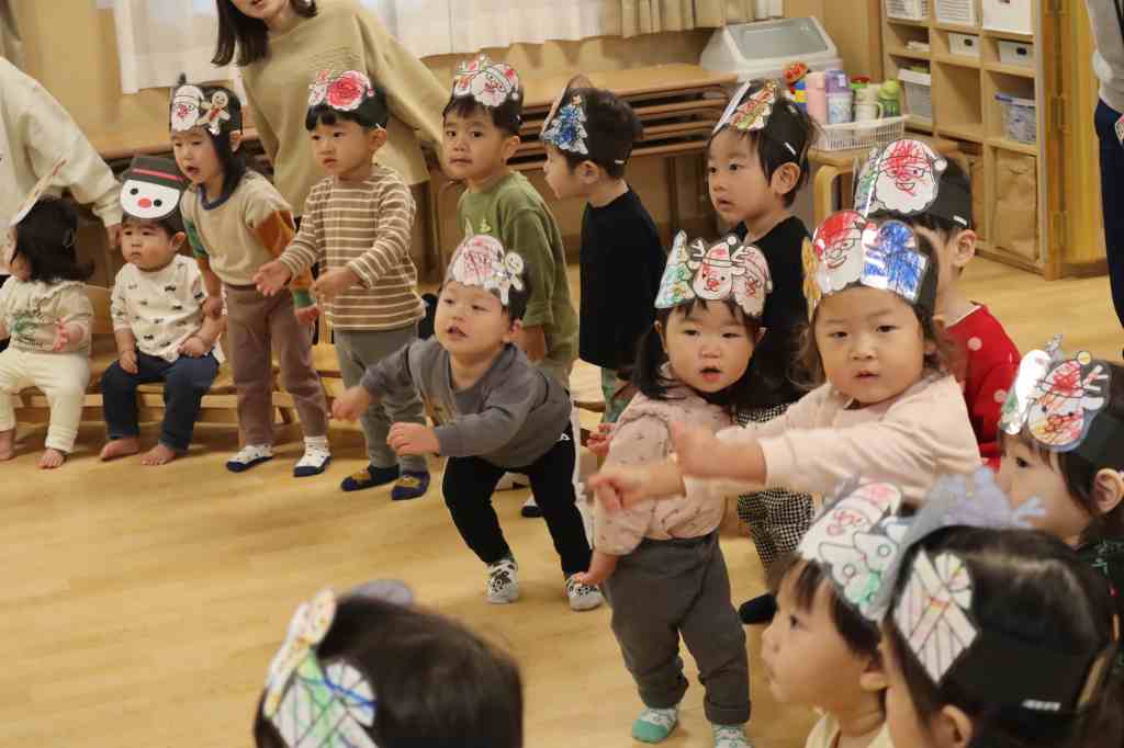 白組さんは、トナカイとスノーマンのお面を付けて準備万端♪