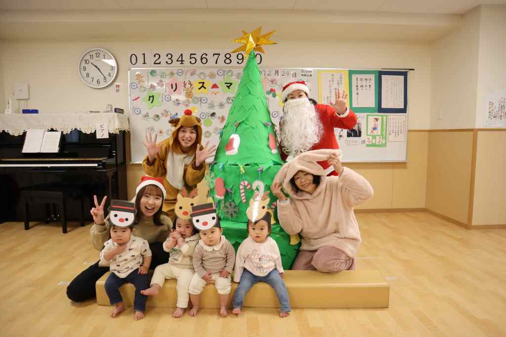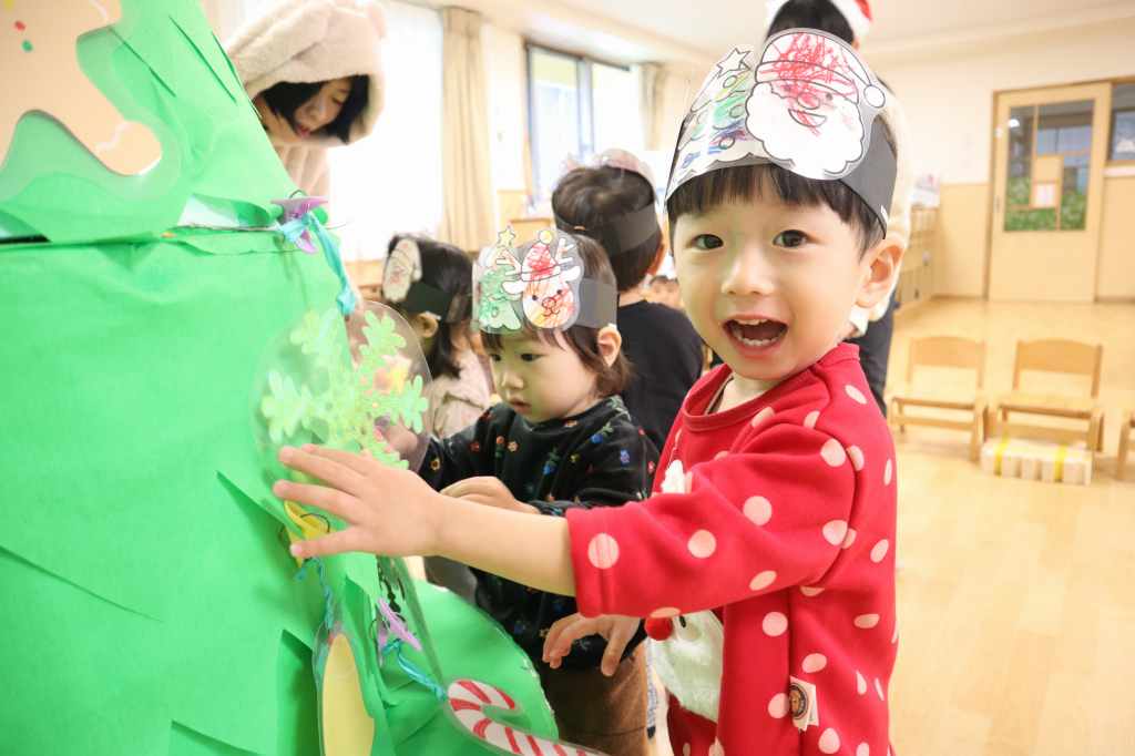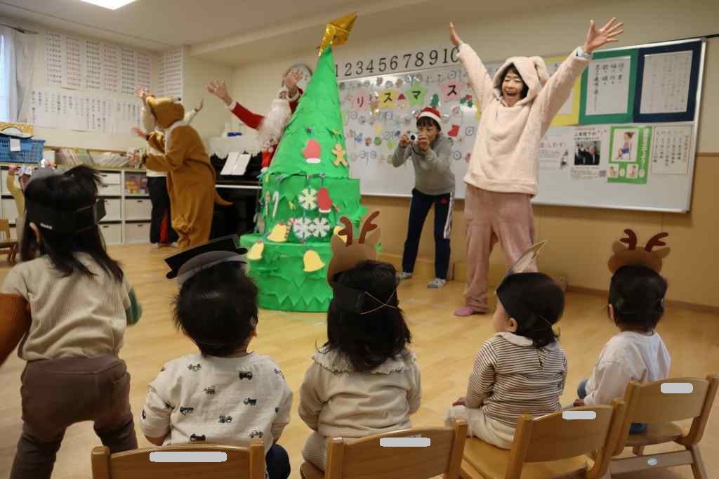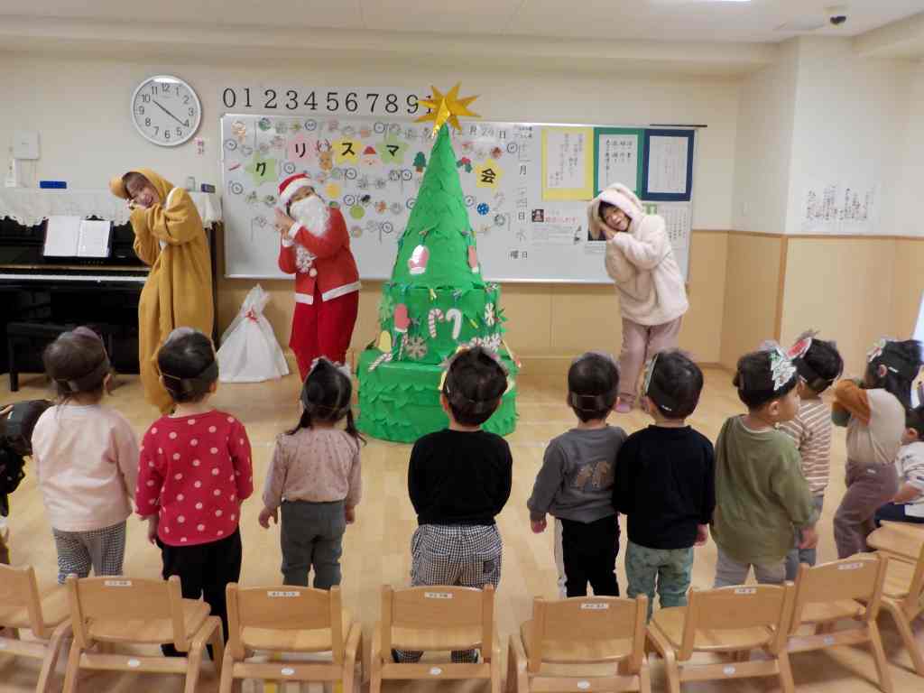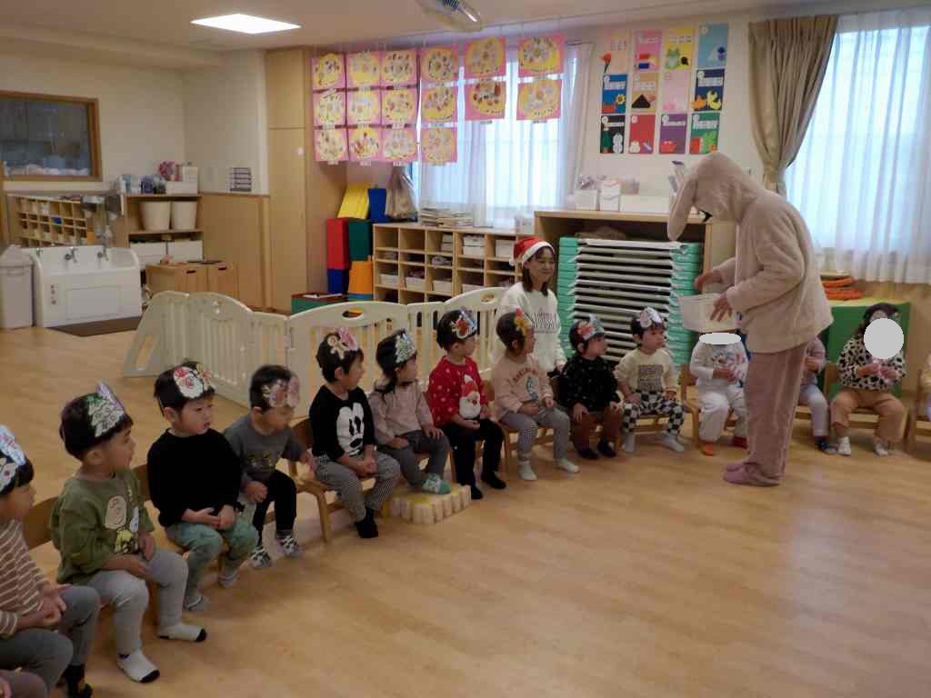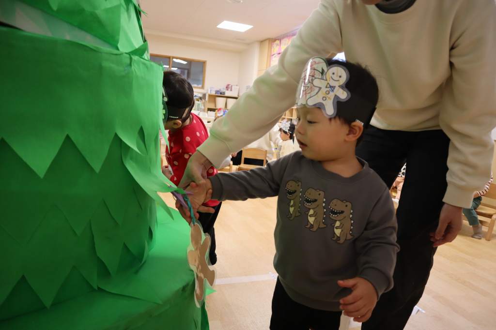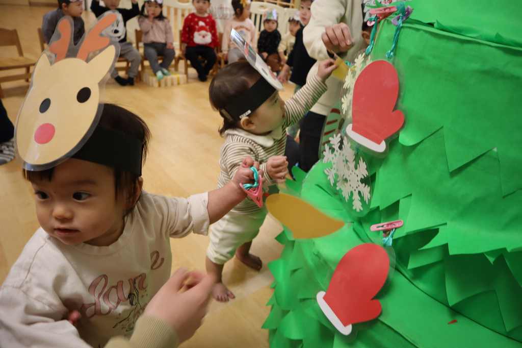クリスマスの手遊びをしたり飾りを見たりしていると、うさぎさんがクリスマスツリーを