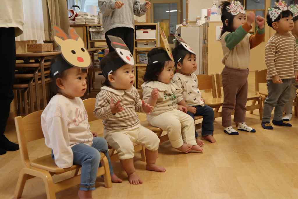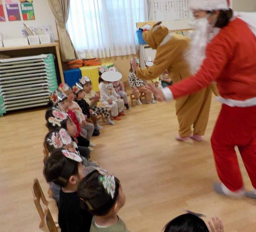 練習していた「サンタが街にやってくる」のダンスをサンタさんとトナカイさんと一緒におどったよ♪