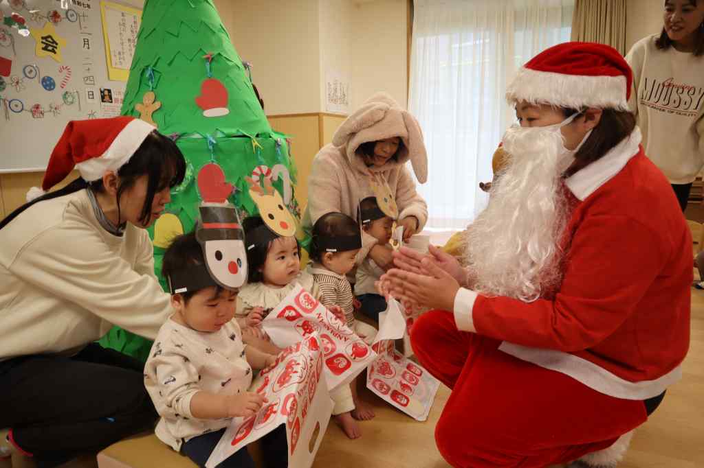 ちょっぴりビックリしながらも、泣かずにサンタさんとタッチしたり手を振ったりしていました。