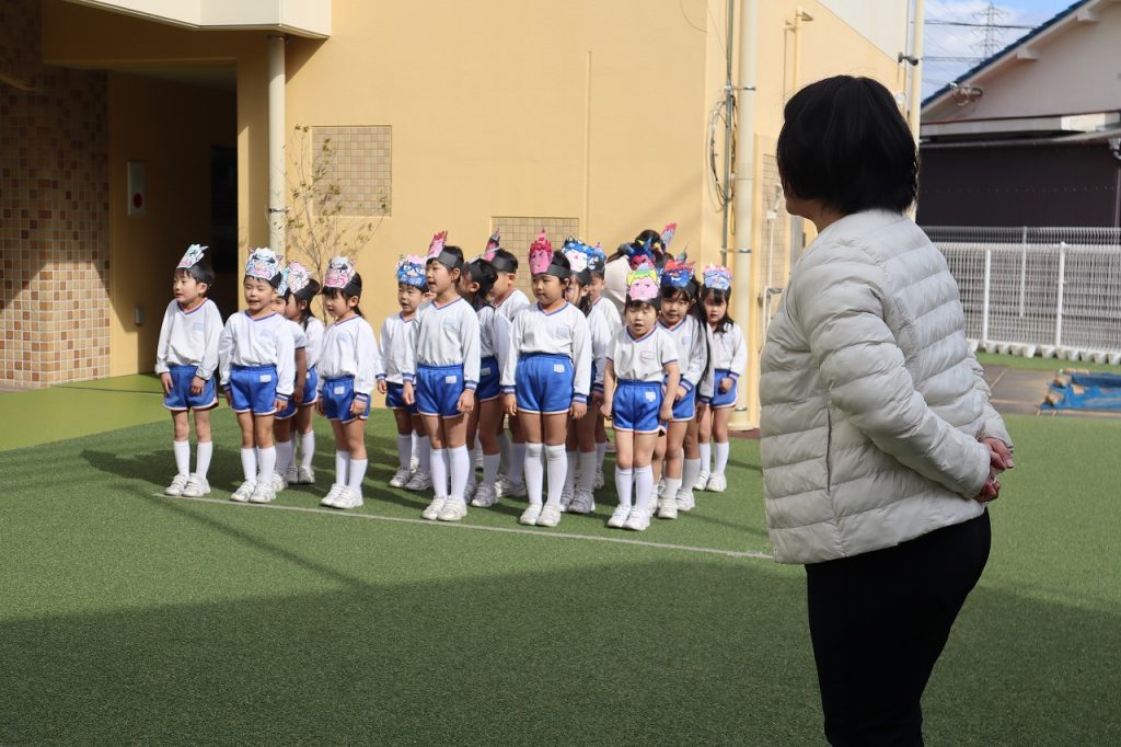 豆まきを前に、園長先生のお話を聞きました。