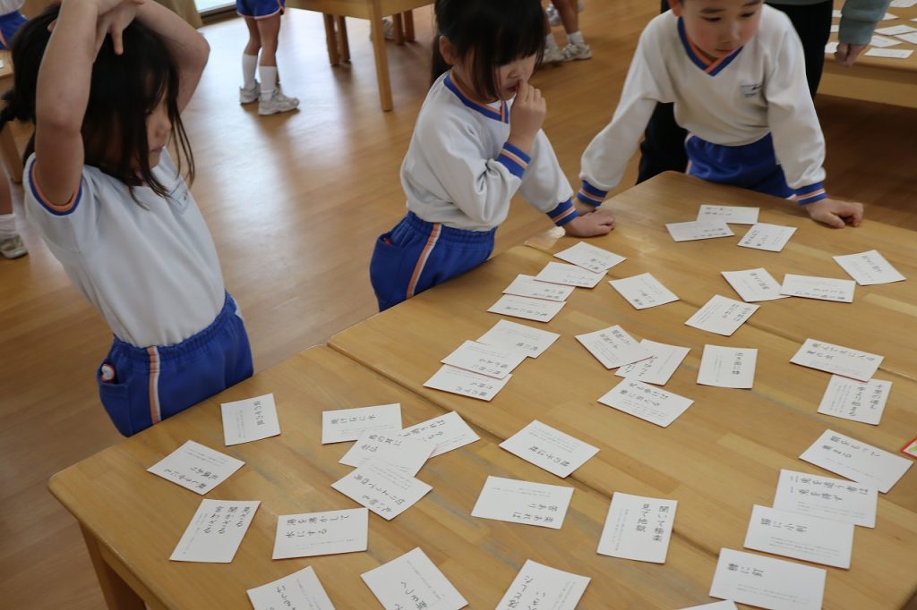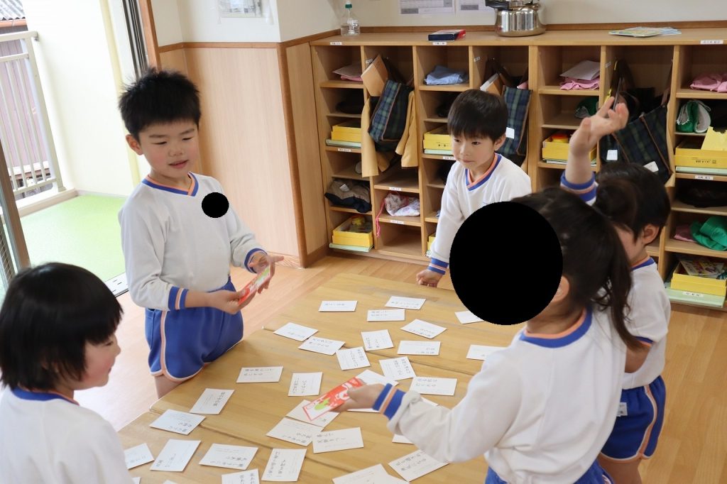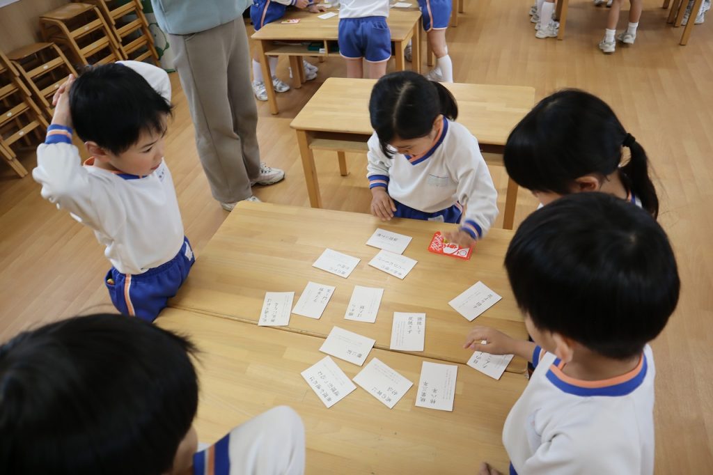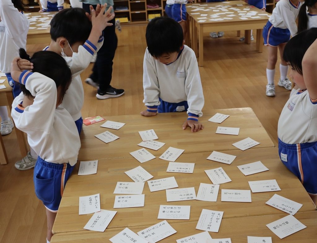 札を読むとすぐに札に手が伸びる子供達。