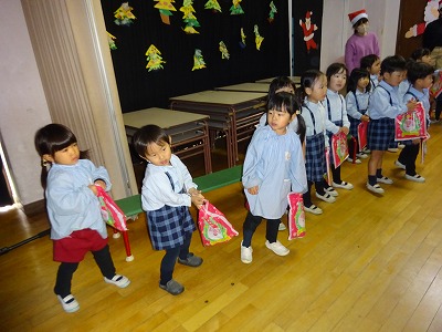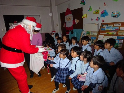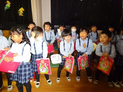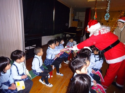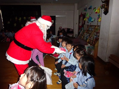 サンタクロースからプレゼントをもらって、「Thank you!」と英語でお礼を言う子どもたちもいました。サンタさんに会えてうれしかったね(^^♪