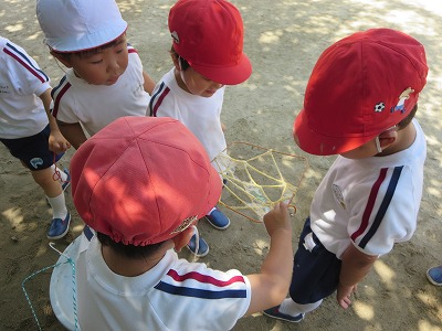 運動会で年中・年長がしているのを見て興味を持っていた子ども達。