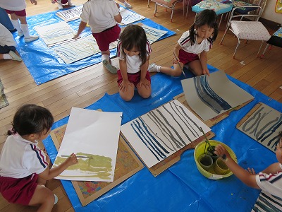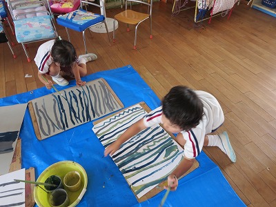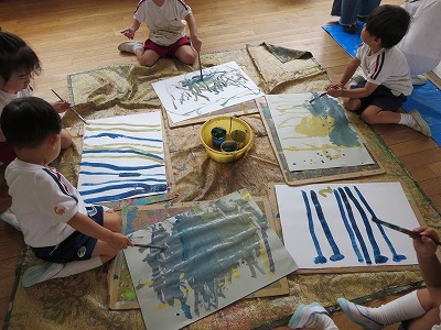 滲んでいく様子を不思議そうに見ながら楽しんでいた子ども達。素敵なにじみ絵ができました!