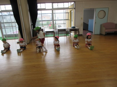 みんなで息を合わせて歩いたり、バルーンの中に入ったりボールを落とさないようにしながら遊びました。