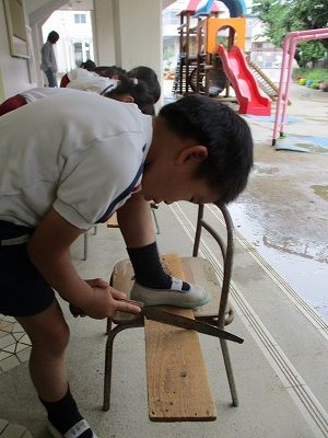 年長になったらのこぎり出来る!と楽しみにしていた子どもたち。