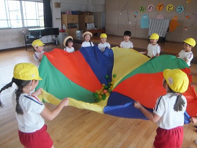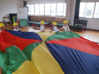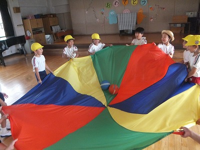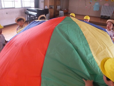 カラフルなパラバルーンを見て、「やりたい~!!」と目をキラキラさせていた子ども達♪