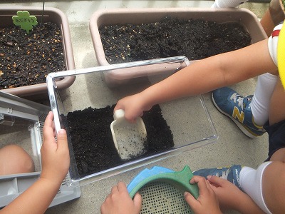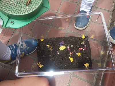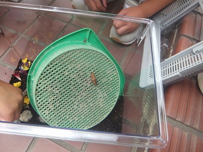 そこでみんなで幼虫のおうち作りから始め、水やえさも準備しました。飼い始めて2数日で1匹がさなぎになり、みんな興味津々で毎日観察しています(^^)