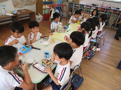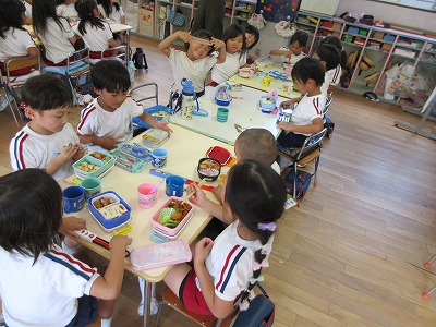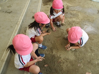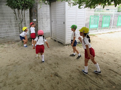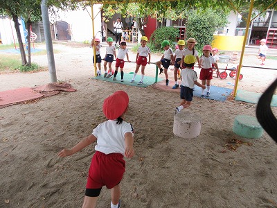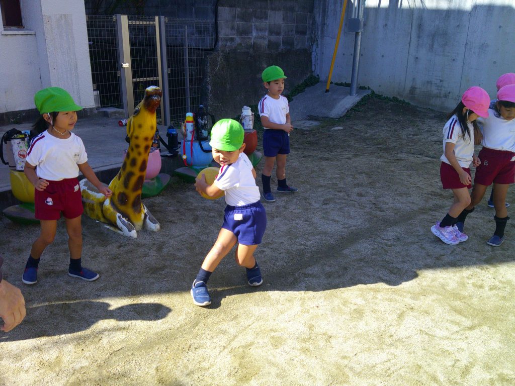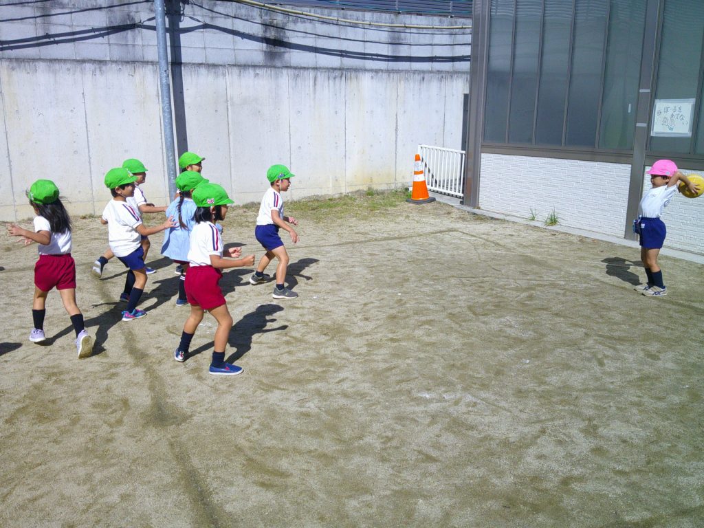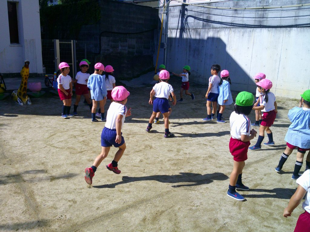 ドッジボールをしましたが、1学期よりも皆の動きがよく、迫力が増していました!ボールが園庭の端に転がっても必死でおいかけている子どももいました!