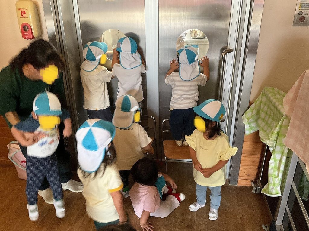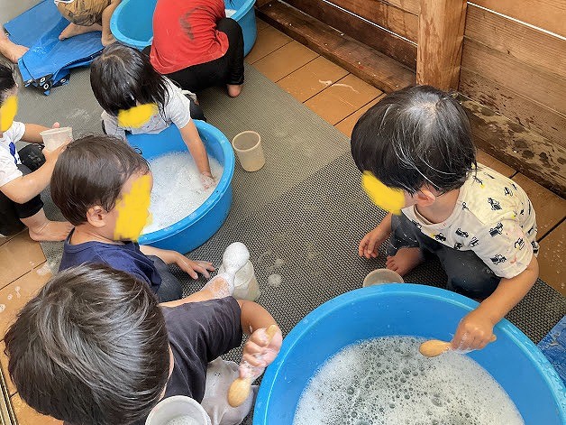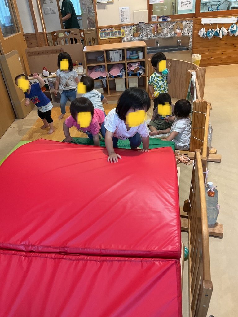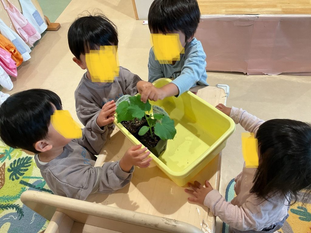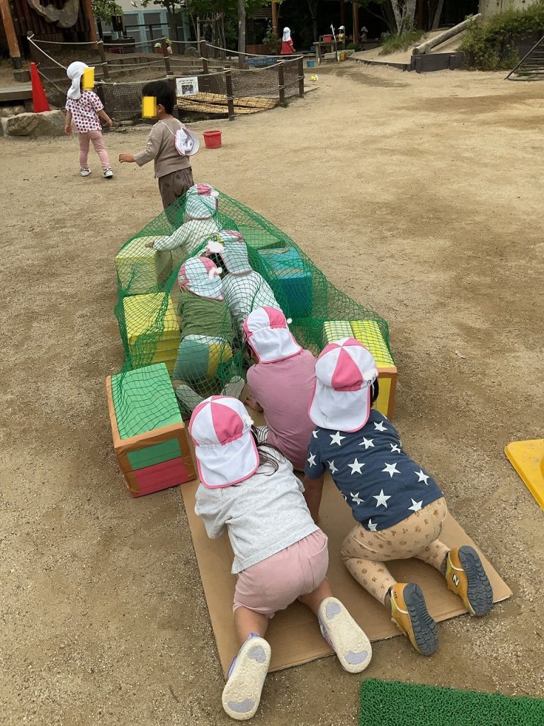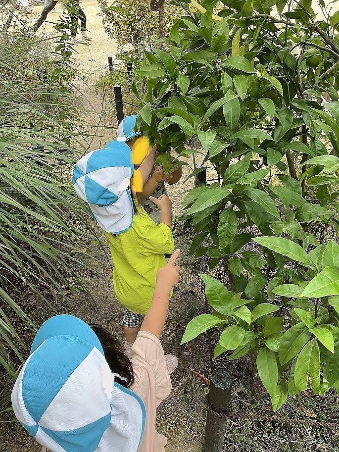 1歳クラスの子どもたちにとって、きっと今年の秋が〝初めての秋″ として感じていることでしょう。木になっている実の大きさや匂いを楽しみ、いろんな色の葉っぱを見つけては喜び、どんぐりを拾ったら宝物のように大切に持ち歩き、皆でどんぐりころころ~♪の歌をず~っとうたっている子どもたち。秋の自然ととっても仲良しになったりすぐみさんです!