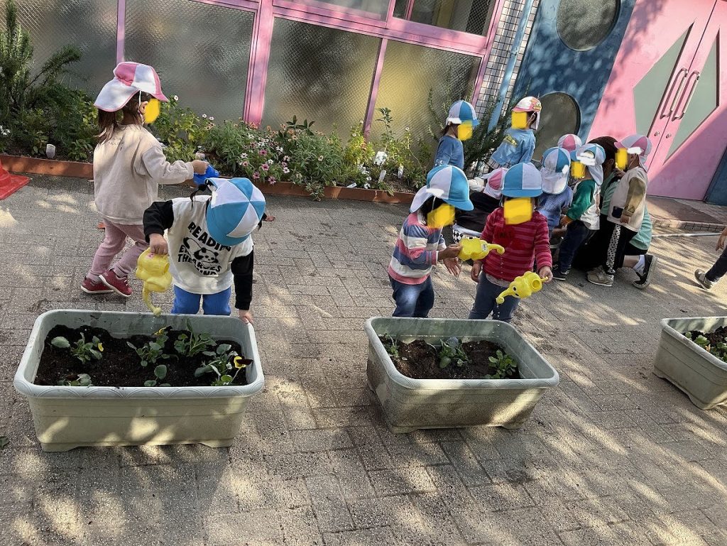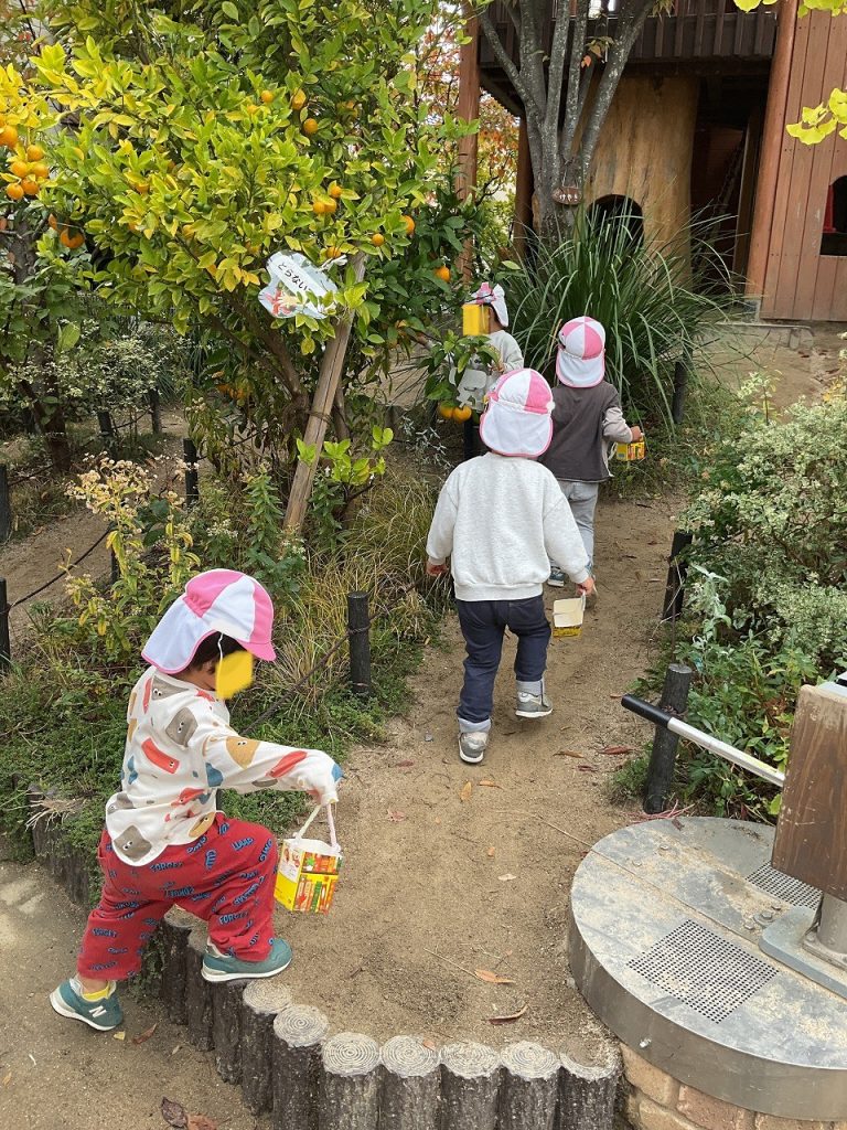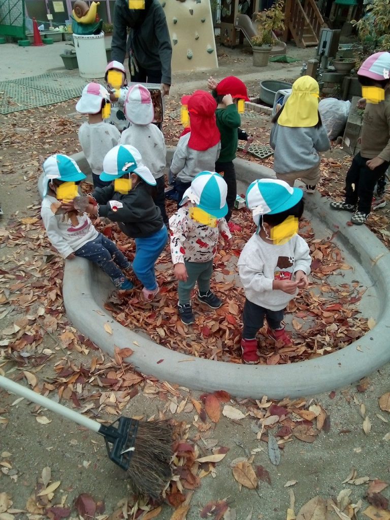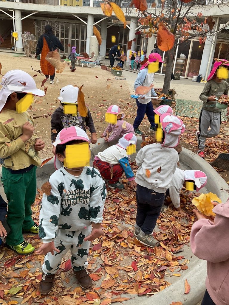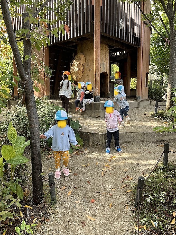 高槻双葉幼稚園の園庭もすっかり秋らしくなった11月!りすぐみ(1歳クラス)の子どもたちにとって、秋の自然は興味がいっぱい!気になる場所へ行っては楽しんでいる姿が見られました。