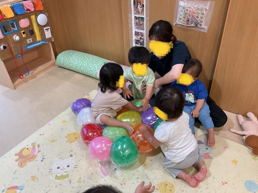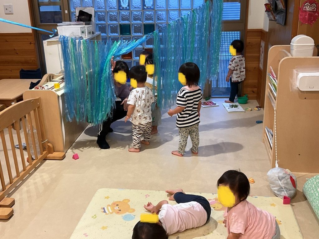 夏は、感触遊びが存分に楽しめる時期です。りすぐみの子どもたちにとっては、初めての経験もたっぷりの夏になることでしょう。安全に気を付けながら、8月も楽しみますよ~‼