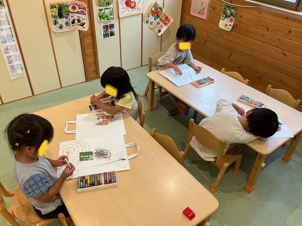 お祭りに行ったことがある子もいて、実はフレンズさんの夏祭りをとても楽しみにしていたうさぎぐみさん。お祭りに持っていくカバンにも、絵を描いたりシールを貼ったりしながら、ワクワクしていました。楽しい経験をさせてもらって、フレンズクラスさんに感謝です!
