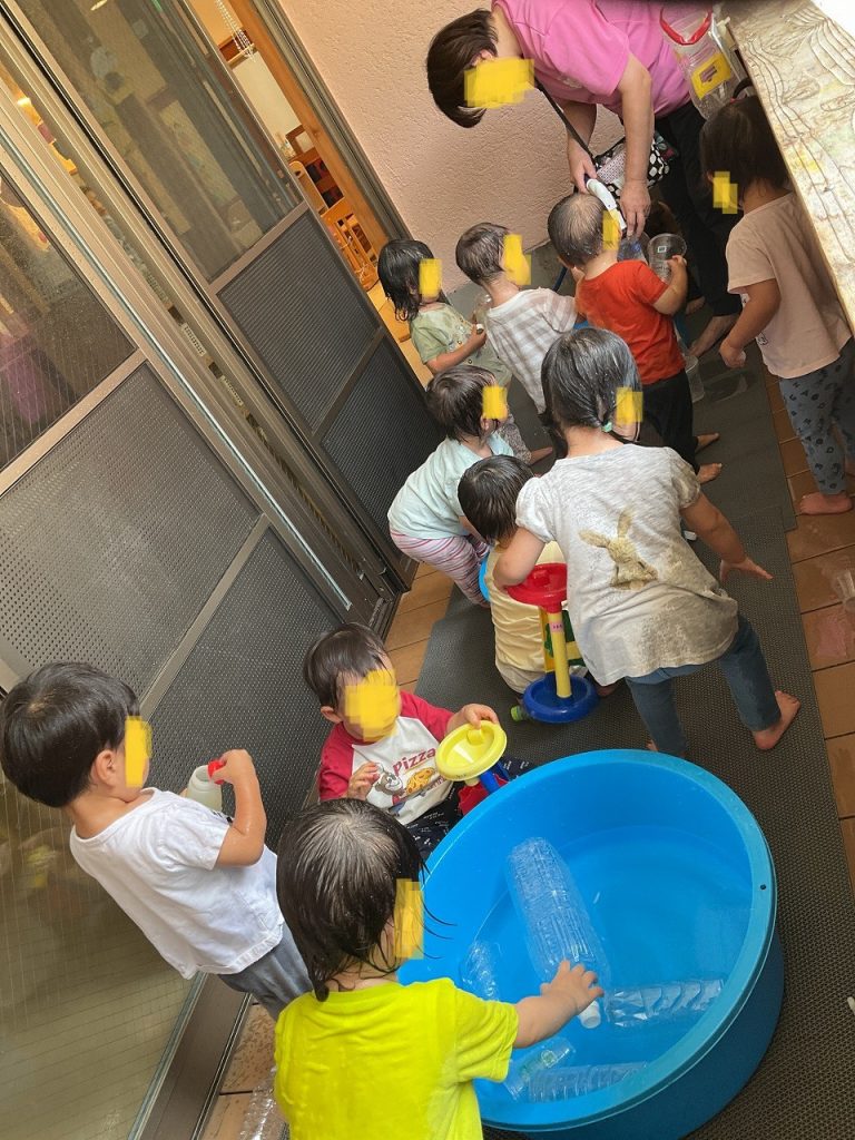昨年の夏よりも暑い!そんな毎日ですが、うさぎぐみ(2歳クラス)の子どもたちのパワーは増すばかり!夏の遊びを満喫しております(笑)