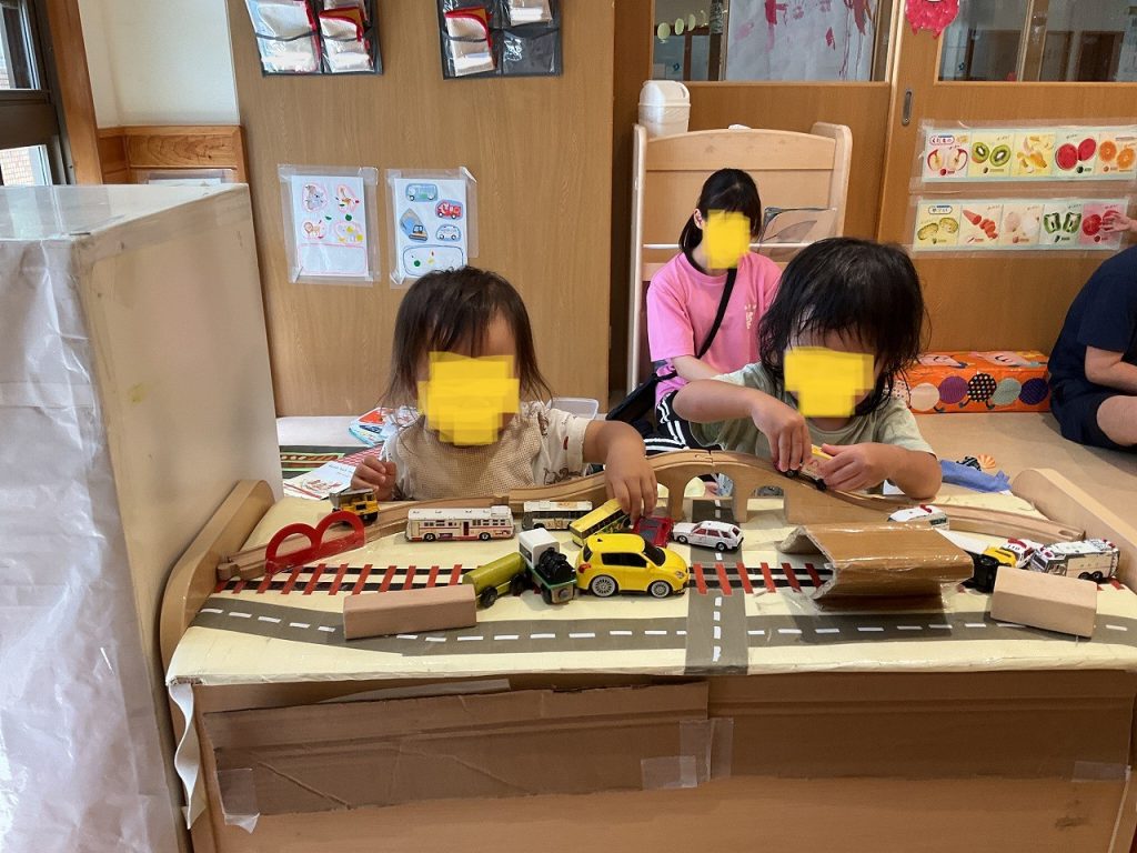 夕方の保育室に、保育士手作りの面白いものが登場!・・・すぐ集まってくる子どもたち。触ったり、押したり、乗ったり、忙しそうに遊んでいました。