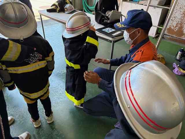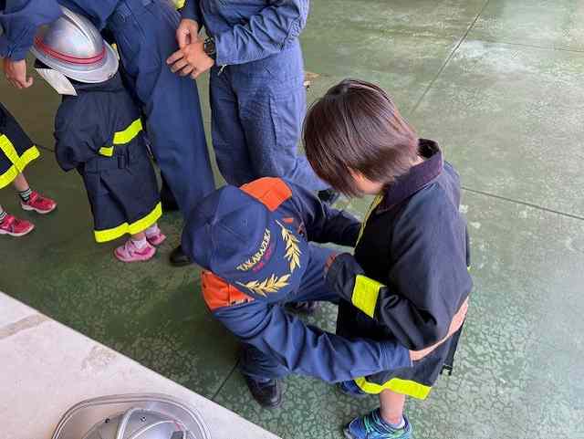 宝塚東消防署にお邪魔して、消防車や救急車の見学したり、お話を聞いたり、装備の着装をさせて頂きました!
