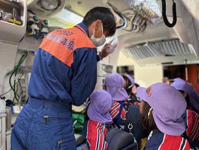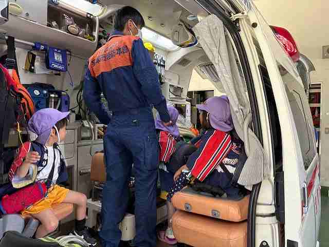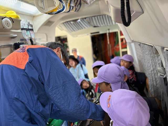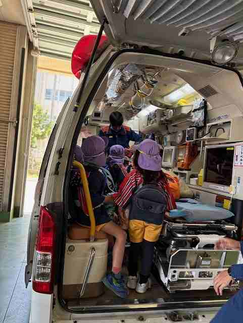 救急車にはたくさんの器具があり、「あれはなに?」という声が止まりませんでした。普通は救急車に乗る時はあまり楽しめない状態だと思うのですが、今回は楽しかったですね!