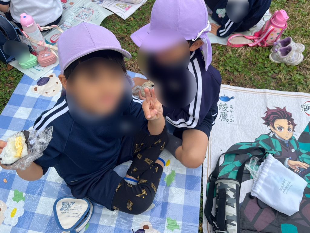 芝生でおにぎりを食べて沢山遊んで帰りました🎵
