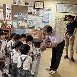 職員の消火訓練を見て、火事を見つけた時にはどうすると良いのか一緒に学び、
