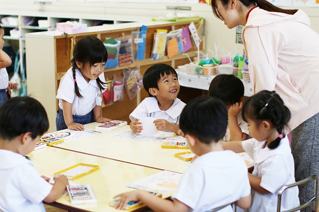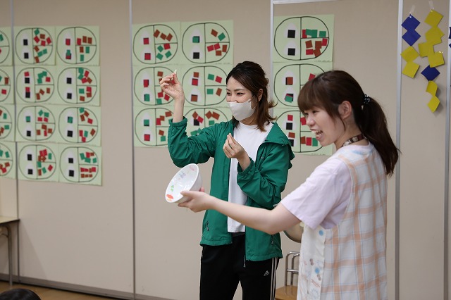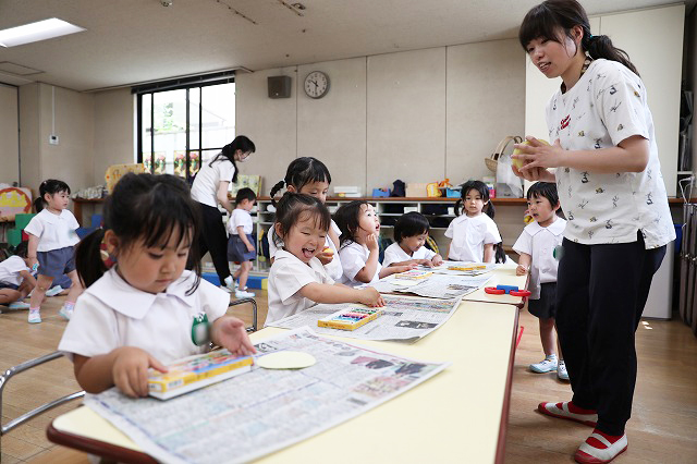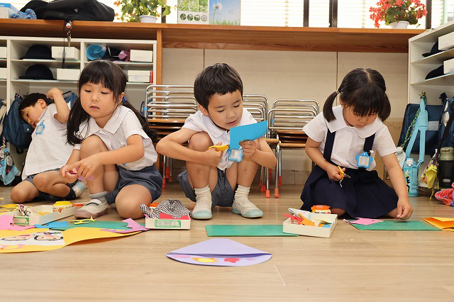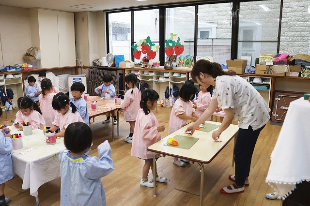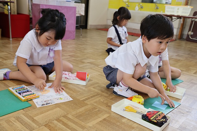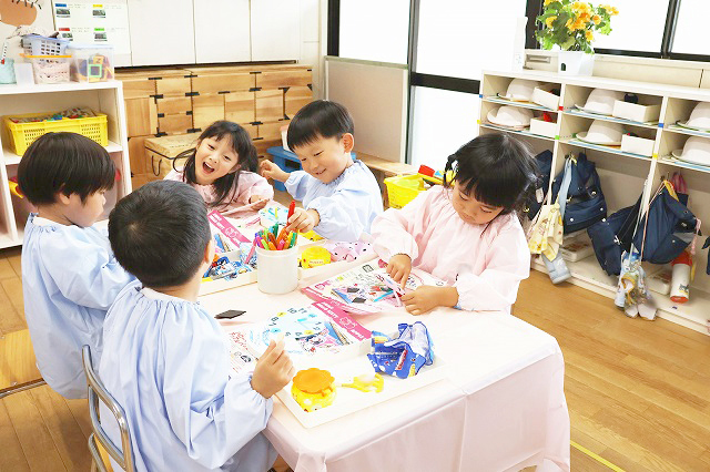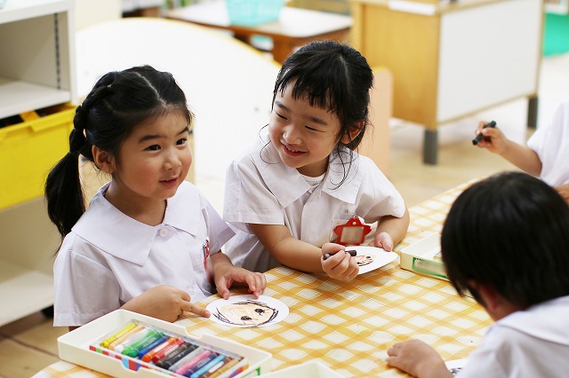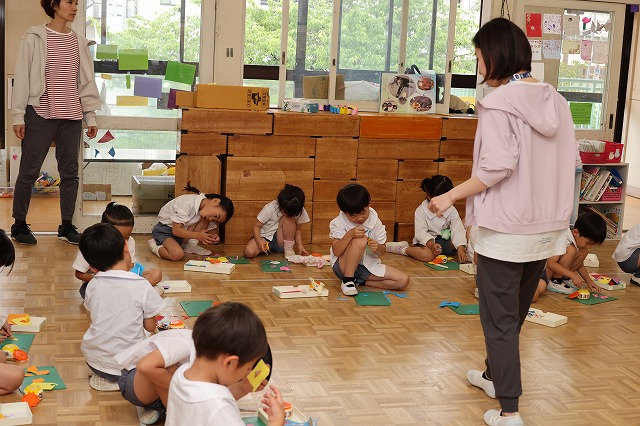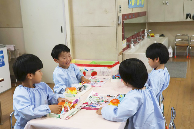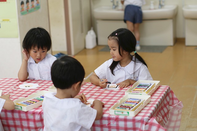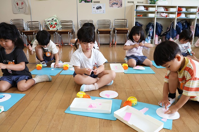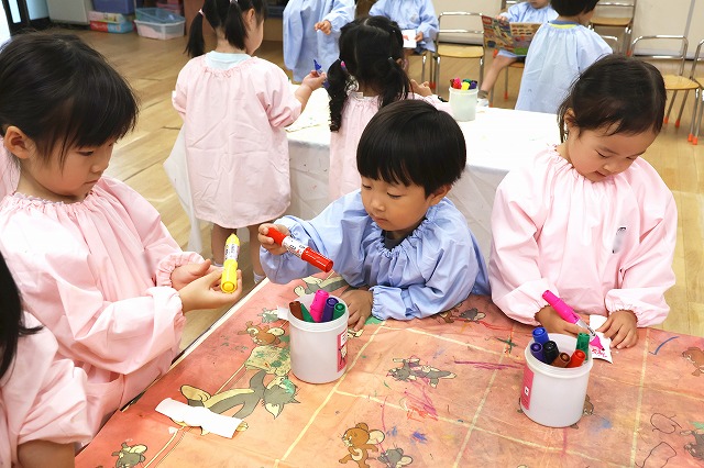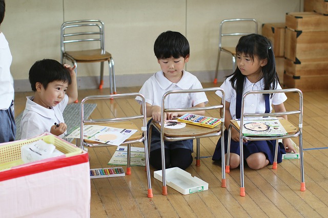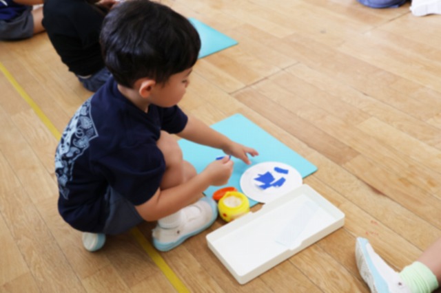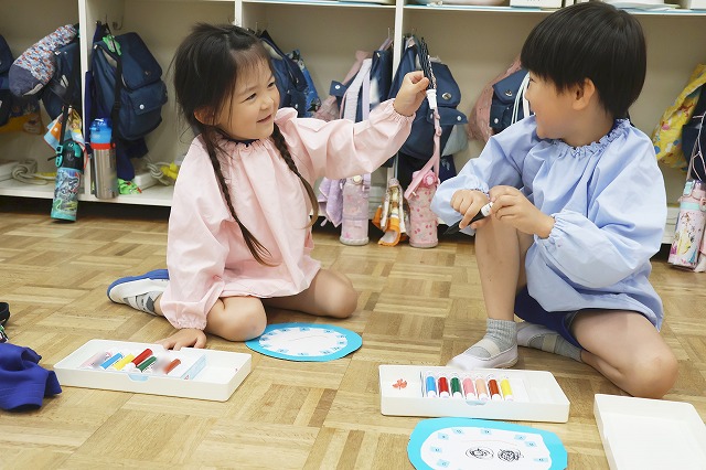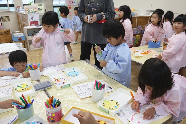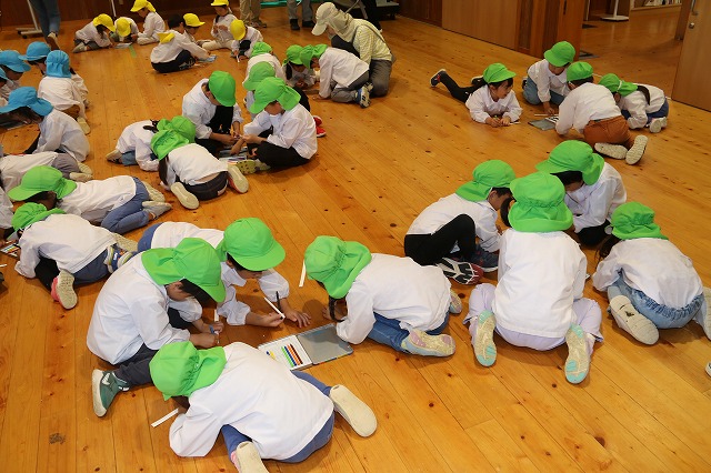 しっかり隙間がないように真剣な顔で筆を動かして塗りこんでいる子、ニコニコ笑顔でお話しながら色づけしている子、いろんな表情が見えました。