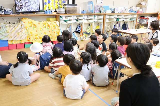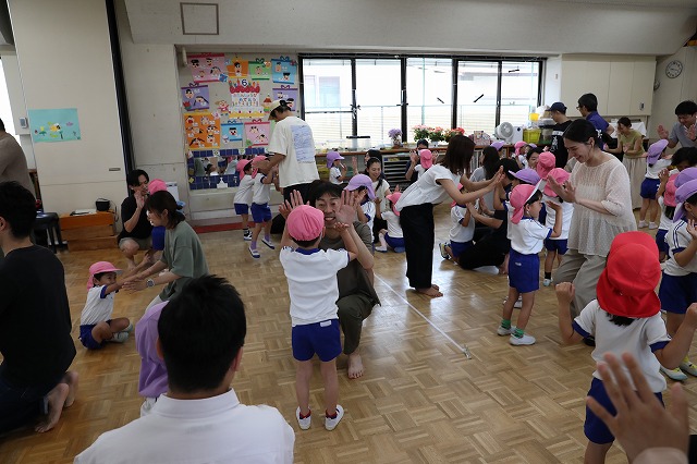 クラスによっては、身振りを交えて歌うクラスもあり、お家の人も一緒に身振りをしてくれて、嬉しかったようでした。