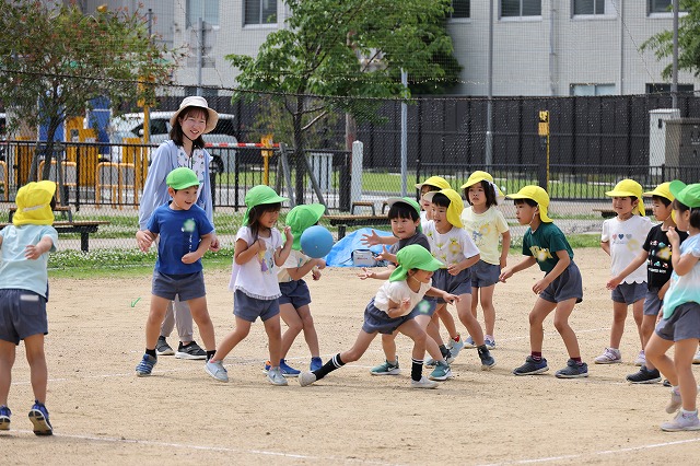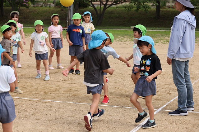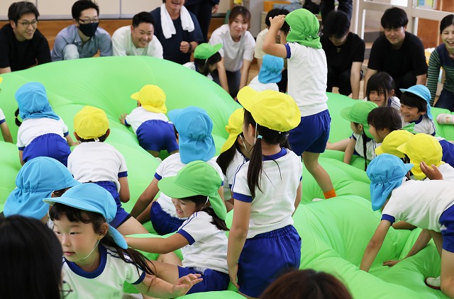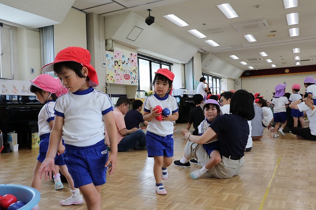 その後は、年長さんの広いお部屋でたんぽぽ組さんつくし組さん一緒にふれあい遊び♪