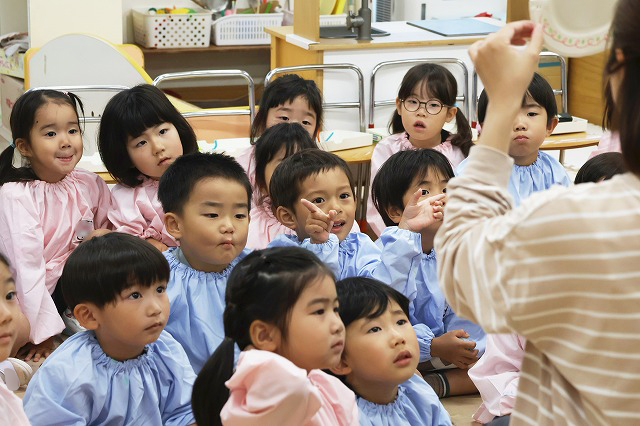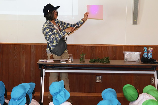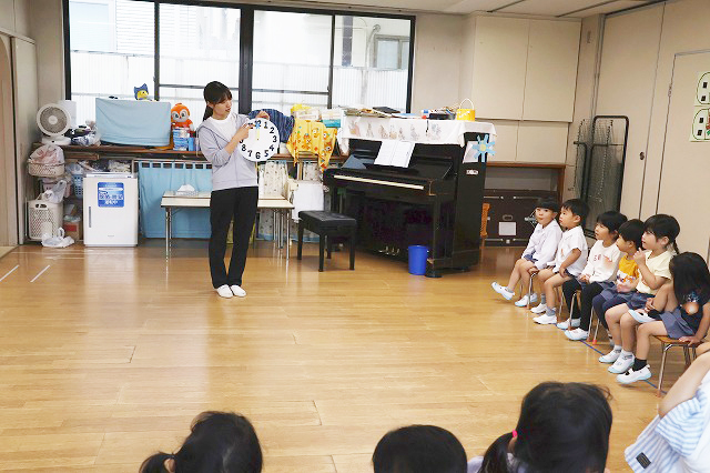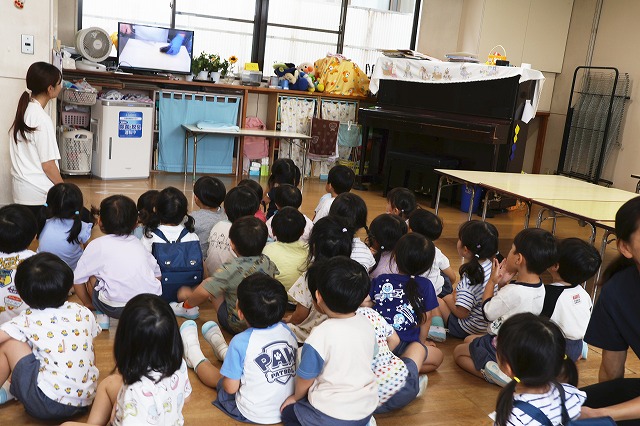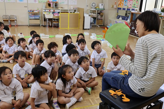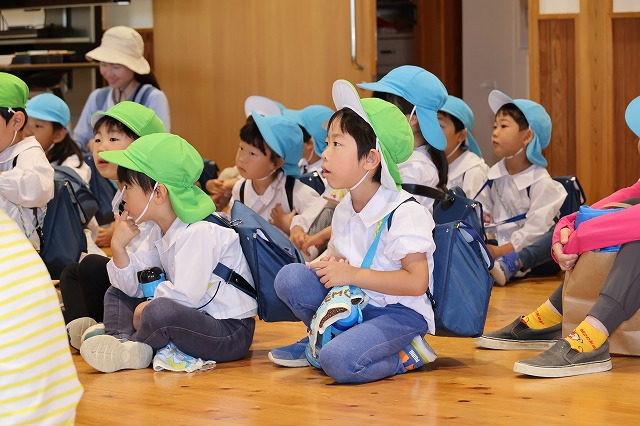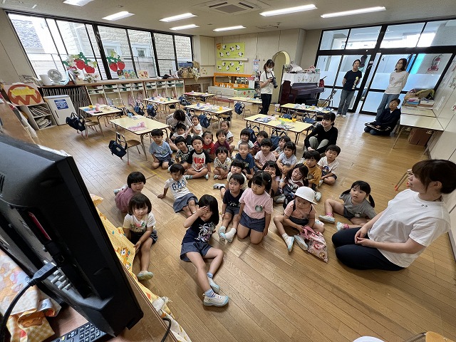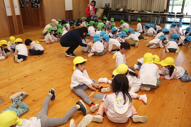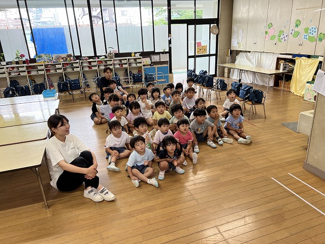 最後はお楽しみの先生たちからの『キャベツくん』と『にんじん だいこん ごぼう』を見ました。おもしろいお話の展開にみんな「えーっ!」と思わず声が出て、笑顔がたくさん見られました!
