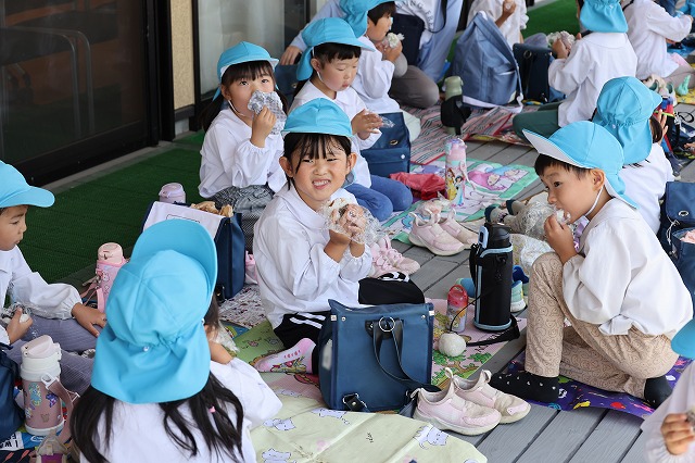 みんなパクパクもぐもぐ♪あっという間に食べ終わり、おやつももらって食べました。