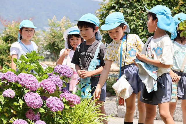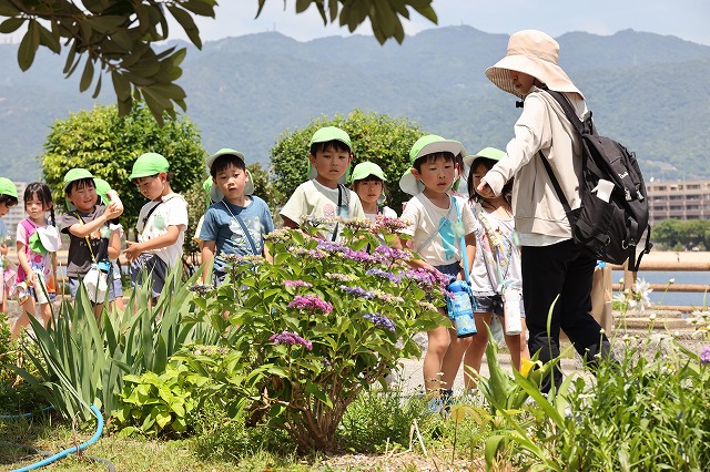 年少組さんは、北の庭の花壇に植えました。