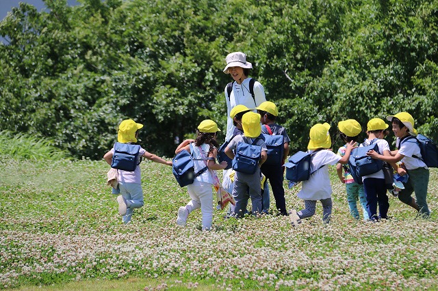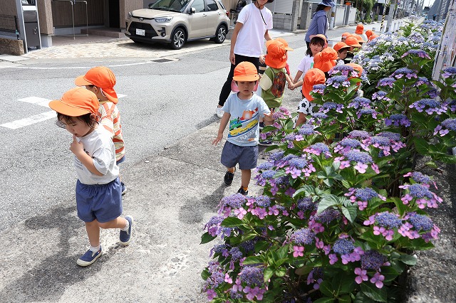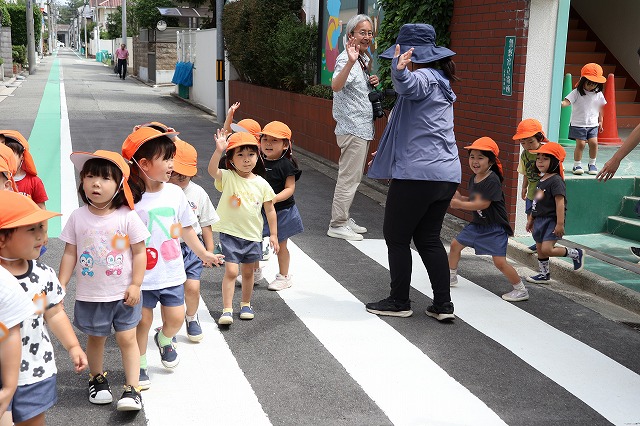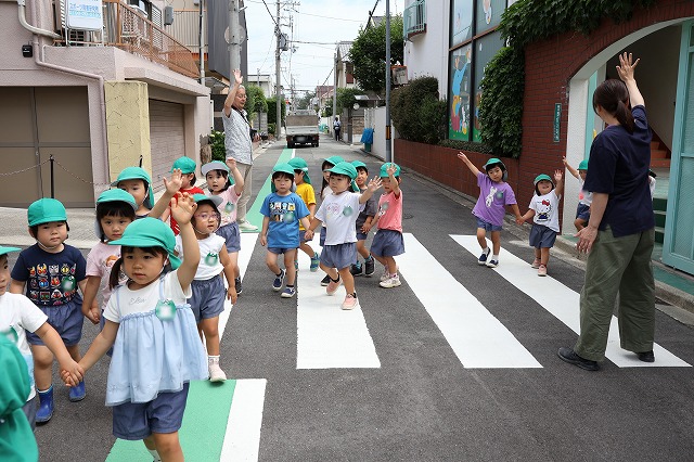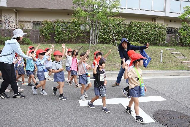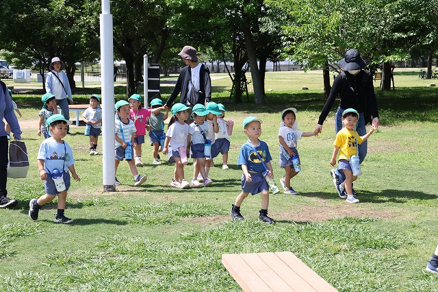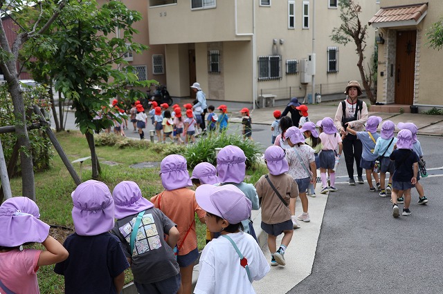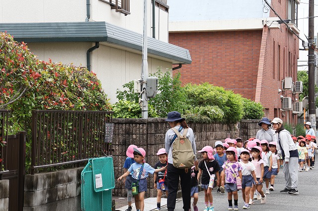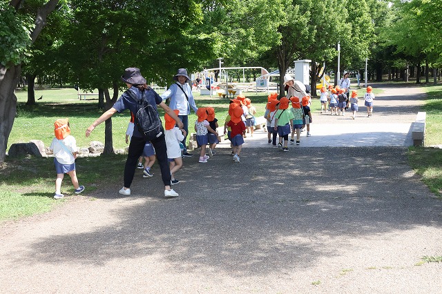 帰り道も同じ道。遊んだあとで大丈夫かな・・・と少し心配でしたが、さすが年中組さん「おなかがすいた~」「つかれた~」というお声もちらほら聞こえましたが、頑張って歩いて帰ってくることが出来ました。