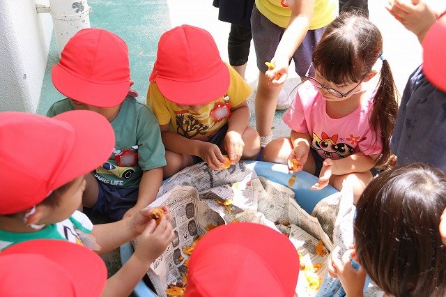 食べた感想は「おいしいー!」「甘くなってる!」「もっと食べたーい!」という声がたくさん♪みんな先週の柿と味の違いを確かめるようにしっかりと味わいながら食べていました。