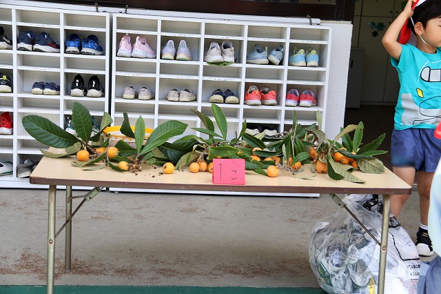 あとの柿は先生たちが枝切りばさみで切り、枝についてる実を年中さんと年少さんも収穫しました。ふじ組さんも学級閉鎖が終わり、翌日に行いました。