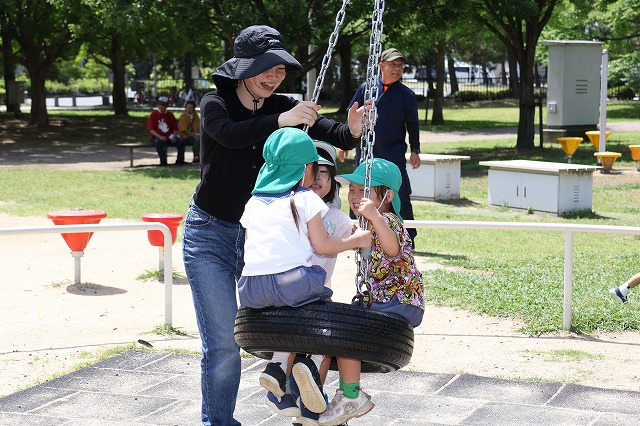 途中、陸橋も渡りました。少し遠くの公園でしたが、みんなちゃんと自分で歩いていくことが出来ました♪