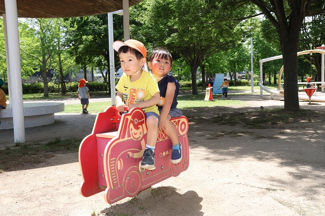 ブランコやジャングルジム、お山のような遊具・・・たくさんの初めての遊具がたくさんで、みんなあちこちに走り回って遊んでいました。