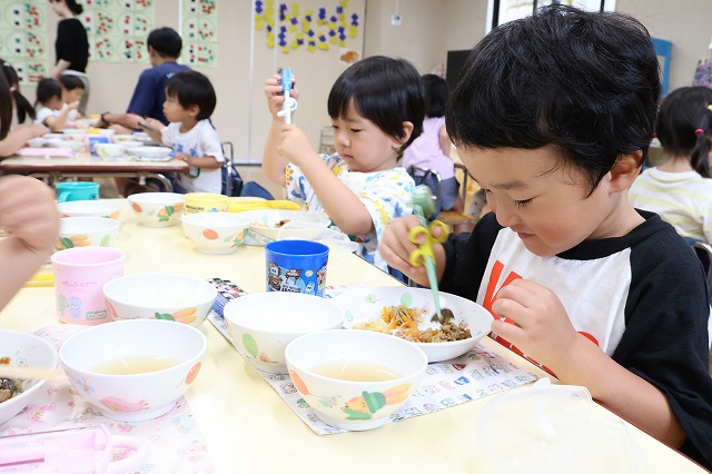 いつも少な目で食べていた子が今日はモリモリと完食‼たべるんじゃ―効果おそるべし!(^^)!
