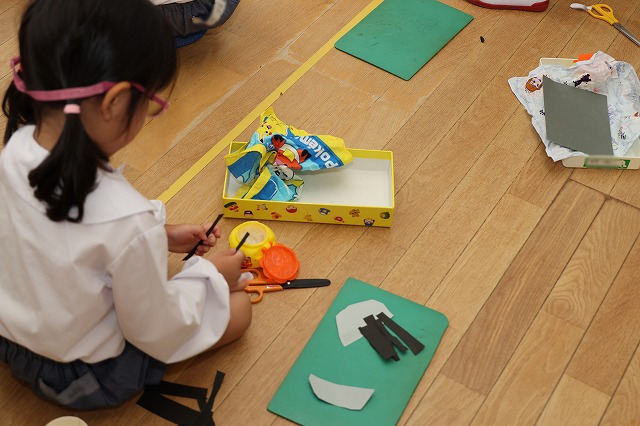 年少組さんが初めてはさみを使って製作を楽しみました。