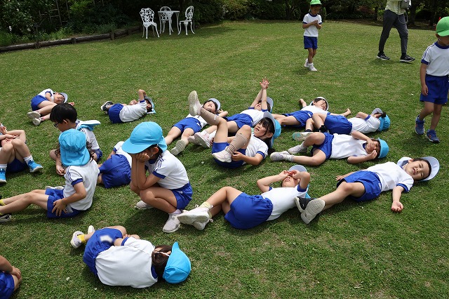 幼稚園にかえってきてからは、見た様子をクラスごとに話し合ったり、自分たちがつばめになって表現遊びを楽しんだりしました。