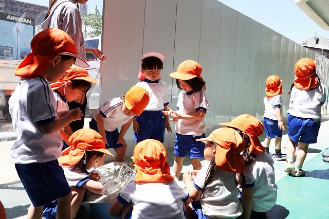 幼稚園にかえってきてから、それぞれのクラスでだんごむしを1人ひとり手に取って遊びました。クラスによっては、全部で何匹いるのか数えてみたクラスもありました。その数なんと181匹!!