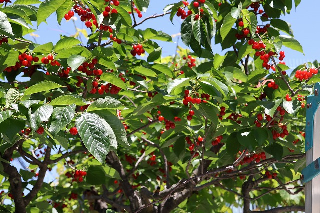 枝から実をちぎるとポロっと下に落ちてしまってもう一度取り直したり、髙いはしごの上に登るのが怖くて腰が引けてしまい、先生に支えてもらってさくらんぼをとったり、特にはじめての子は収穫体験に満足気な表情も見られました。