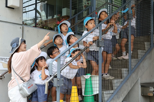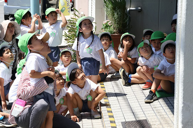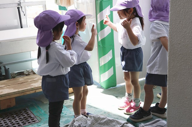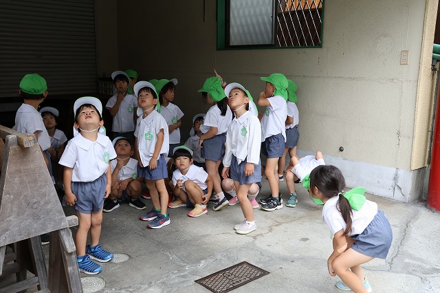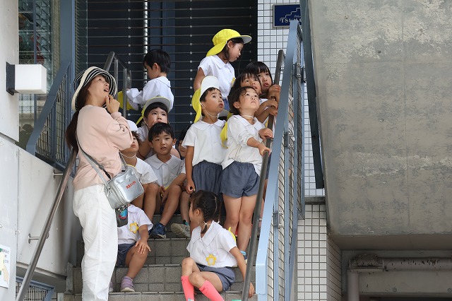 交代で3か所の巣を見ましたが、その間に子つばめがうんちをする姿が見られたクラスがあったり、親つばめが口から何か落とすのが見れたりとクラスによってつばめの色々な様子を見ることができました。