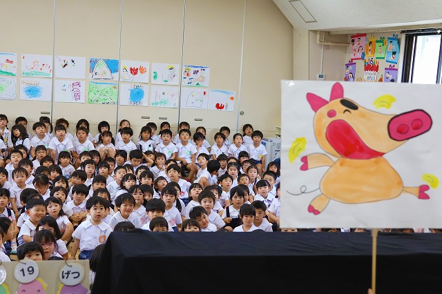 誕生日会の後は、先生たちによるペープサート「へんしんトンネル」