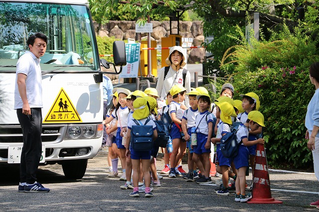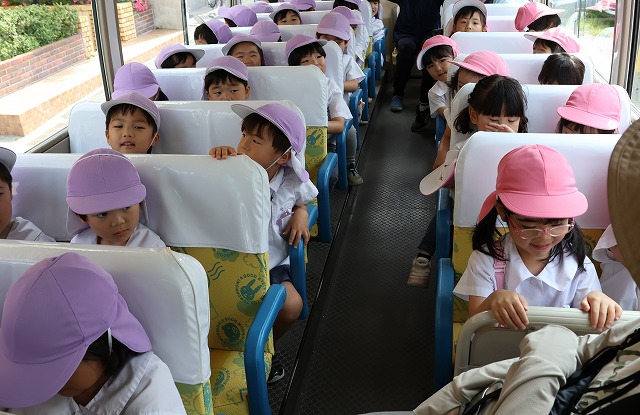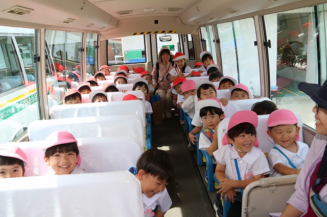 普段バス通園ではない子は、バスに乗るのも久びりだったり、初めてのバス。