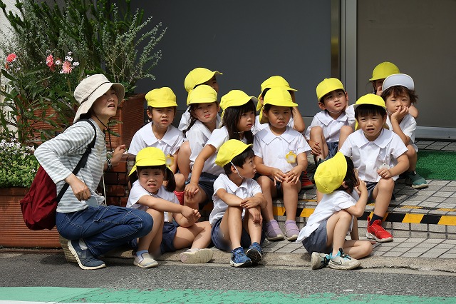 5月21日(水) 年長組さんが甲陽園にあるケーキ屋さん「ツマガリ」さんへつばめを見に行ってきました。 周辺にはいくつかの巣があり、バスに乗っている時からつばめが飛び交う姿が見られました。